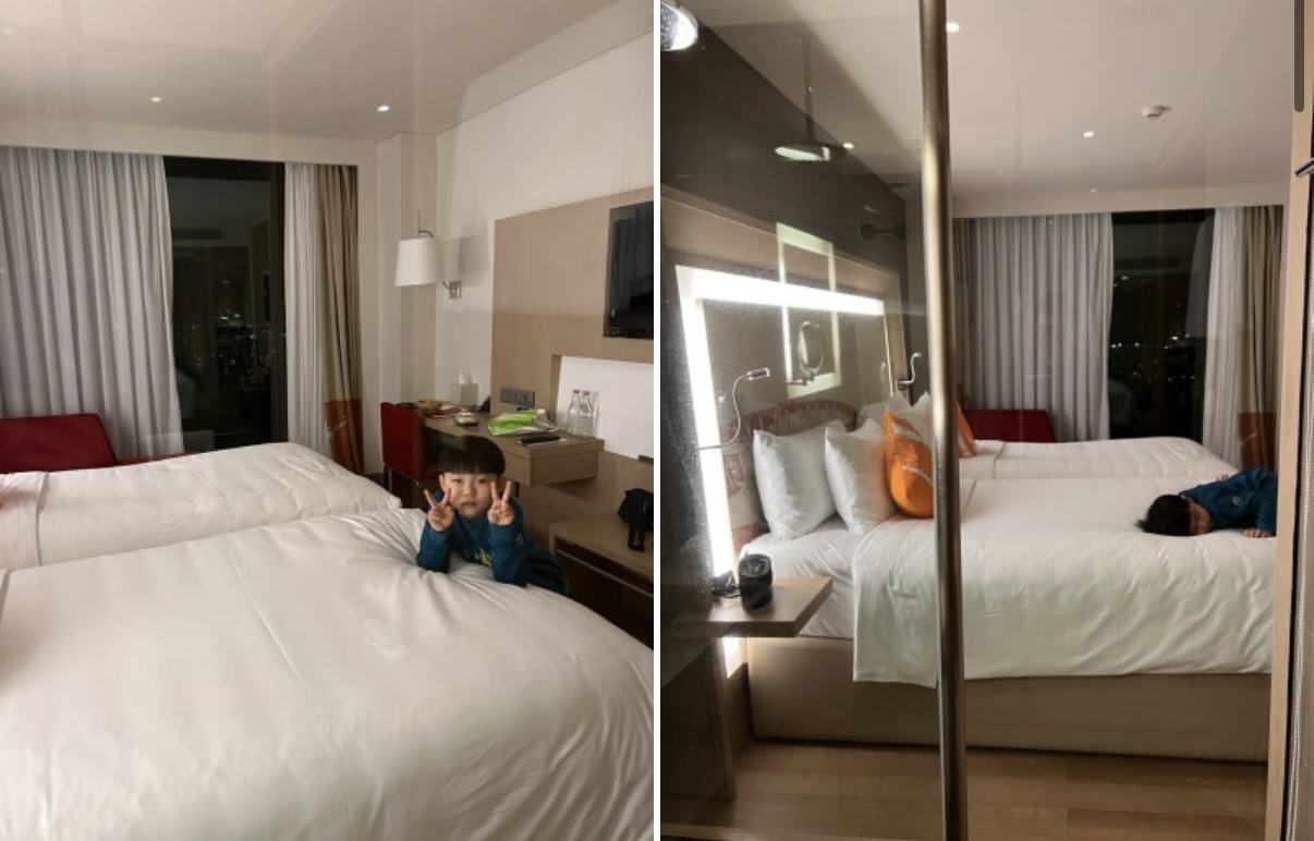 다낭패키지로 4인 가족 예약해도 4베드룸이 아니고 이렇게 원룸 투베드 스타일로 방이 두개가 예약되는데 내부는 깨끗했습니다.