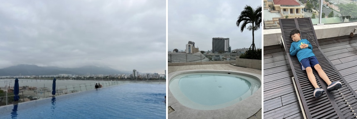 노보텔 식당 바로 앞에는 수영장도 널직하고 다낭 한강을 보면서 물놀이를 즐기시는 분들도 아침부터 많았습니다. 참고로 다낭에도 한강이라고 부르는 강이 있습니다.