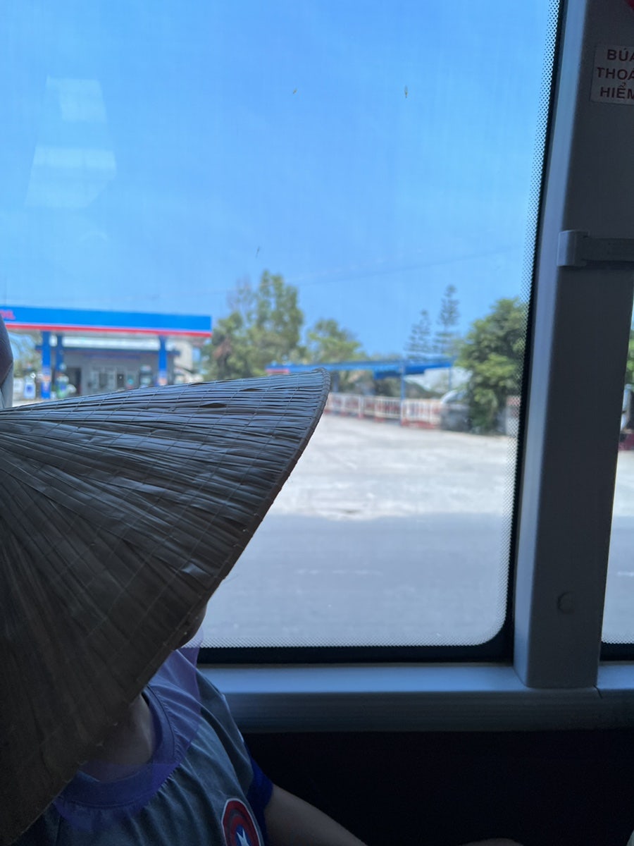 저희는 잘 햇빛이 강한 날만 썼는데 아이들은 기념이라 그런지 잘 쓰고 다녔습니다. 이게 삿갓형태라 강한 햇빛을 얼굴쪽은 잘 막아주는 베트남모자였습니다.