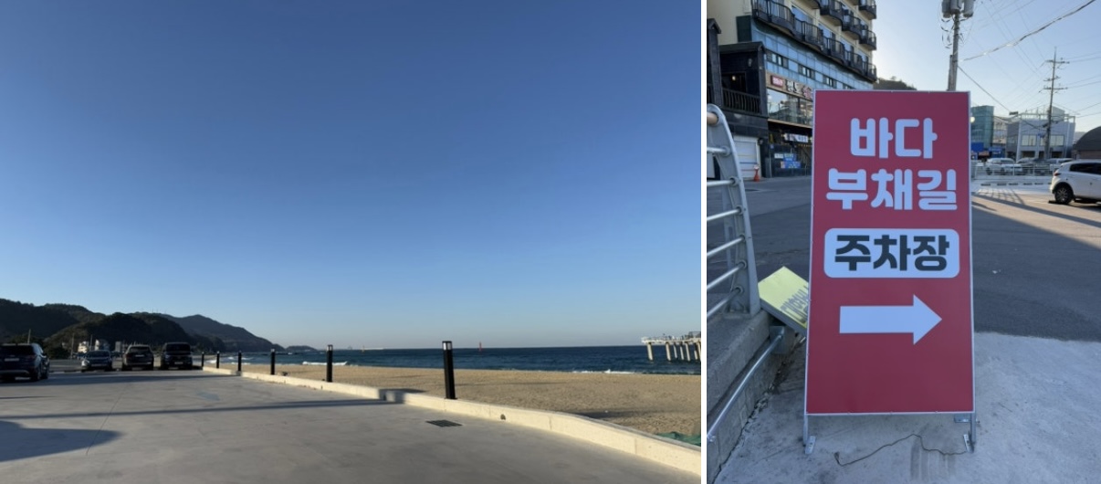 정동진팔도횟집 혹은 정동진모래시계식당 앞에서 보면 공영주차장이 무료로 운영이되고 있고 그 옆으로 바다부채길주차장 안내판이 있으니까 어렵지 않게 찾으실수가 있습니다. 부채하면 왠지 부채표가스활명수보다 부채도사가 생각나는것은 괜한 기분탓인거 같습니다.