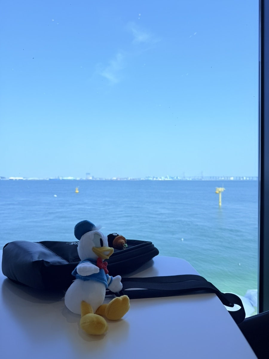 도쿄디즈니랜드 갔다가 늘 함께 하고 있는 우리 도널드덕도 바다를 보니까 좋아하는거 같습니다. 항상 제 가방뒤에서 뒤쪽만 보다가 전망을 봐서 그런것 같습니다.