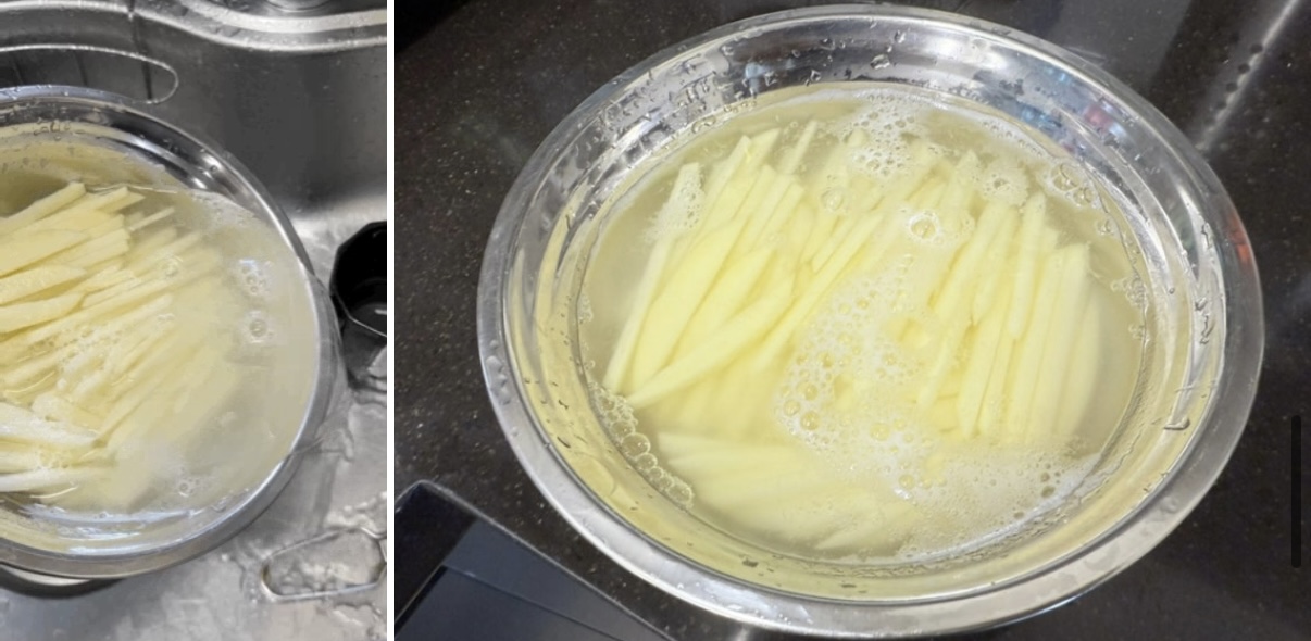 그래서 전분을 충분하게 제거하지 못하면 감자를 볶을때 엉겨 붙을수가 있습니다.