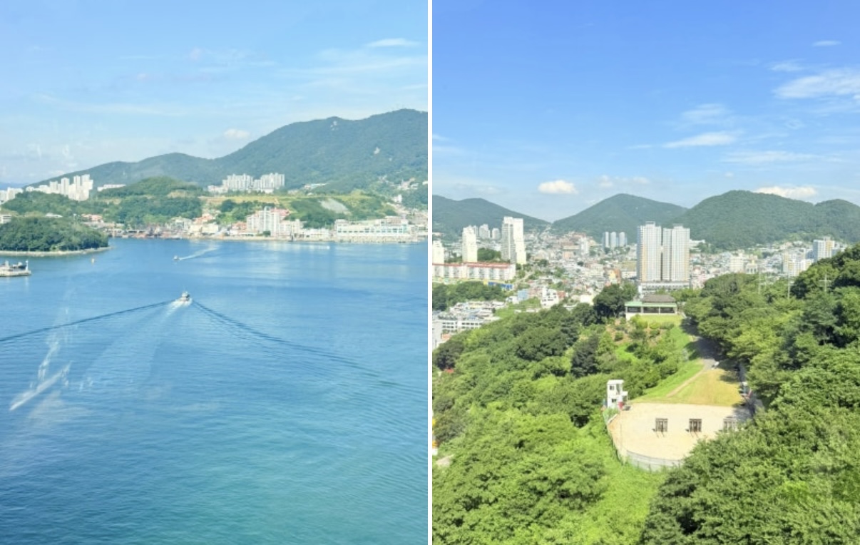 여름이라서 케이블카 안이 더우면 어떻하지 했었는데 에어컨은 없었지만 이렇게 열린 창문으로 바다 바람이 들어와서 막 덥지는 않았습니다.