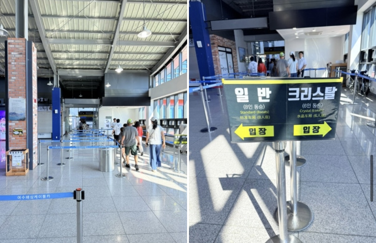 바다뷰가 한눈에 잘 들어 오는 여수해상케이블가 할인과 티켓 예매시 주의점입니다. 저희는 새벽 4시에 일어나 여수 도착을 해서 오픈런으로 여수케이블카 입장을했습니다.
