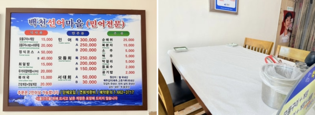 여수 생선구이집 시세가 대부분 인당 20000원 대 부터 시작을 하는데 백천선어마을 식당은 게장과 생선구이를 합쳐서 인당 15000원으로 착한가격업소입니다.