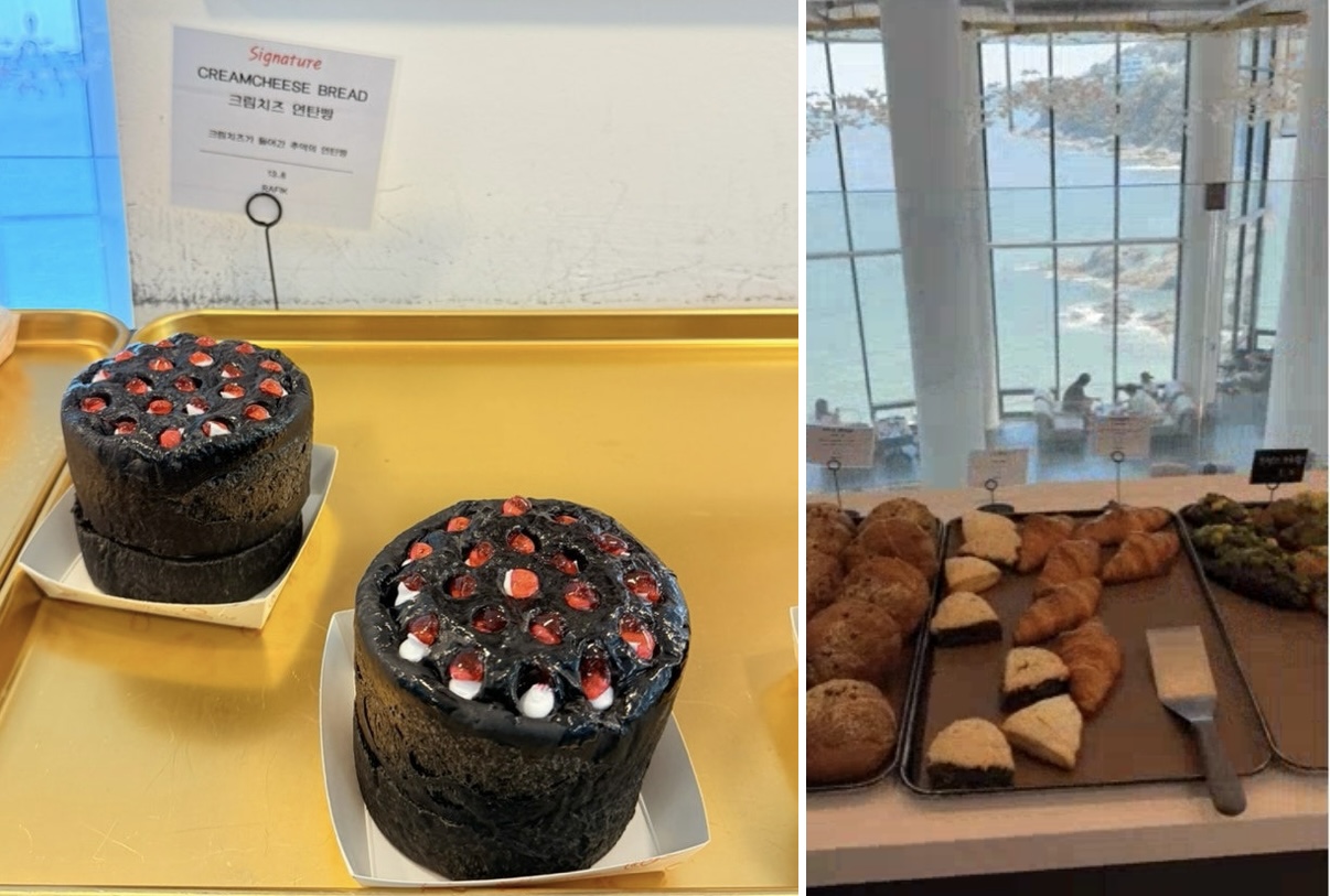 빵 뒤로 살짝 보이는 오션뷰 창이 장난이 아닙니다.