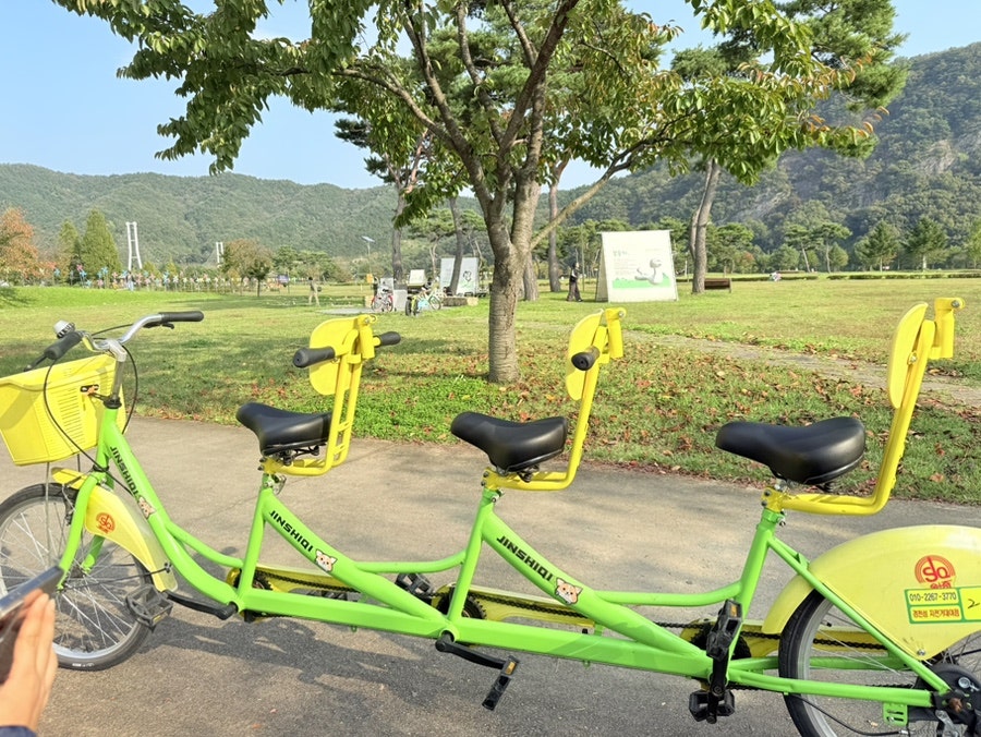 저희는 자전거대여를 어떤걸로 어떻게 할까 고민을 했는데 3인용 자전거가 있다고 하여 이걸로 타보라고 하였습니다.