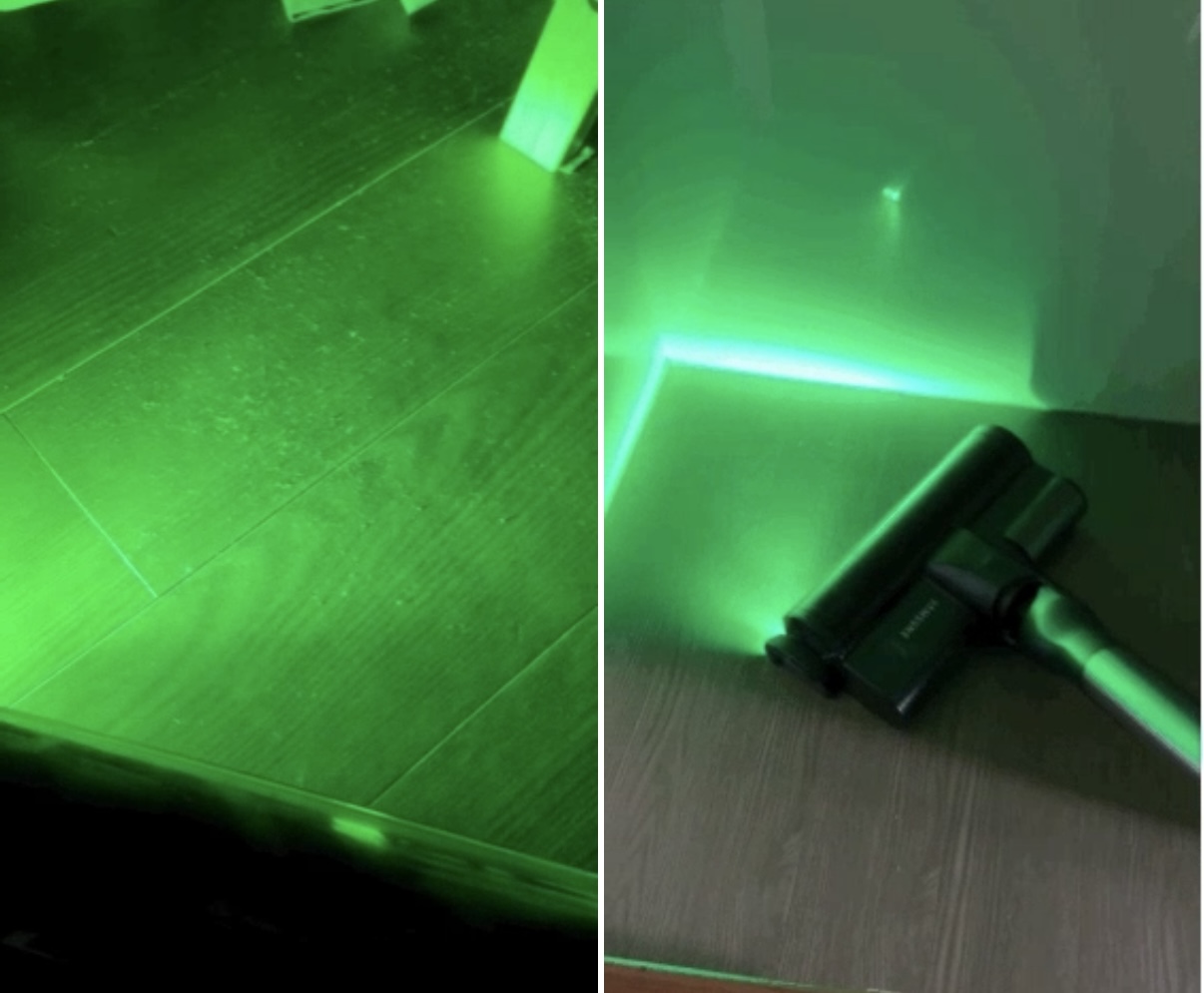 이렇게 버튼 눌러주면 녹색 빛이 나오는데 녹색빛이 먼지가 잘 보이는 이유가 빛이 산란되면서 먼지 등이 사람이 잘 보여지는 색이기 때문입니다.