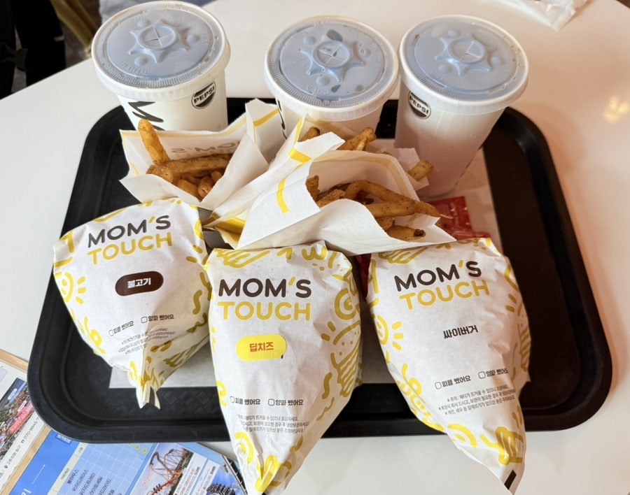 놀이공원을 가는데 굳이 또 프랜차이즈 햄버거를 인가 할수 도 있는데 이유가 가성비도 좋고 눈탱도 없고 빨리 먹고 어트랙션을 많이 타야만 하기 때문입니다.