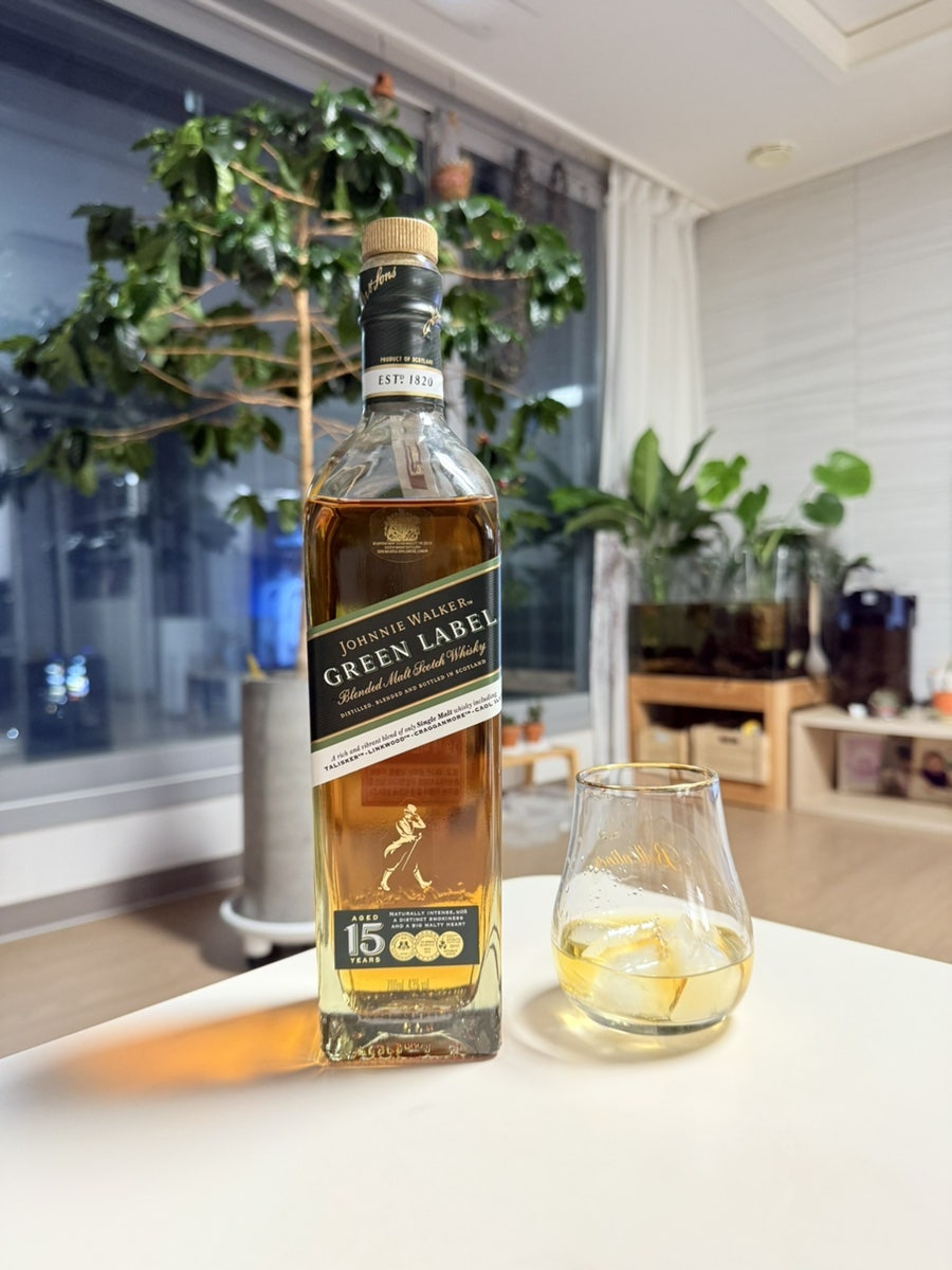 집에서 편하게 마시는 위스키를 찾는다면 특히 위스키를 잘 모르는 친구들과 마실때는 아무래도 브랜드 네임이 있는 조니워커그린라벨이 괜찮습니다.