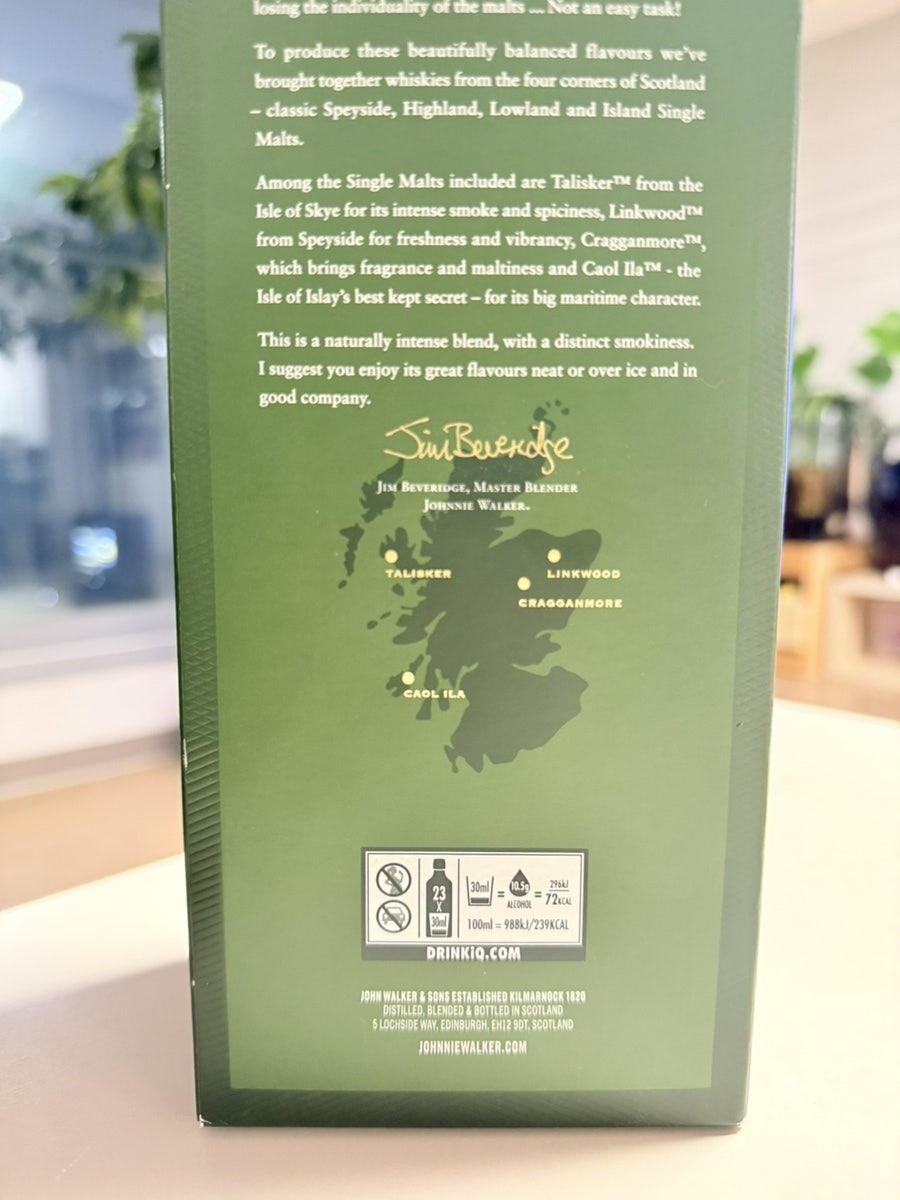 조니워커 등급업 중에서는 100% 싱글몰트 블렌딩한 블렌디드몰트 위스키라는 것이 가장 큰 특징입니다.