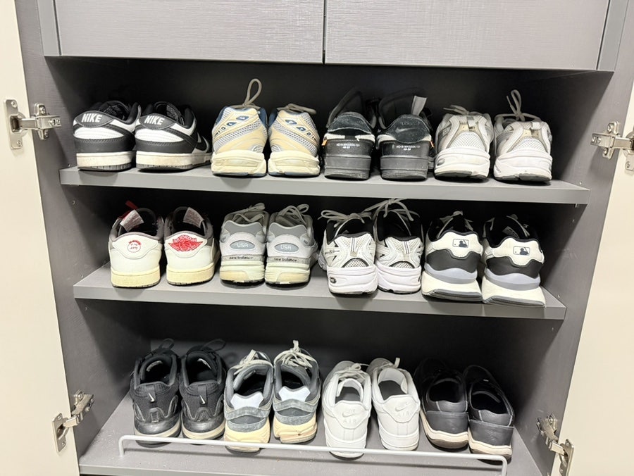 저는 거의 운동화를 하루에 하나씩을 번갈아 가며 신고 있습니다. 나이키5가 아식스1 그리고 뉴발란스4켤레 나머지 기타 등등입니다. 운동화가 많으면 좋은전이 상대적으로 운동화가 덜 더러워 지니 빨래를 하는 주기가 길어져서 좋습니다.