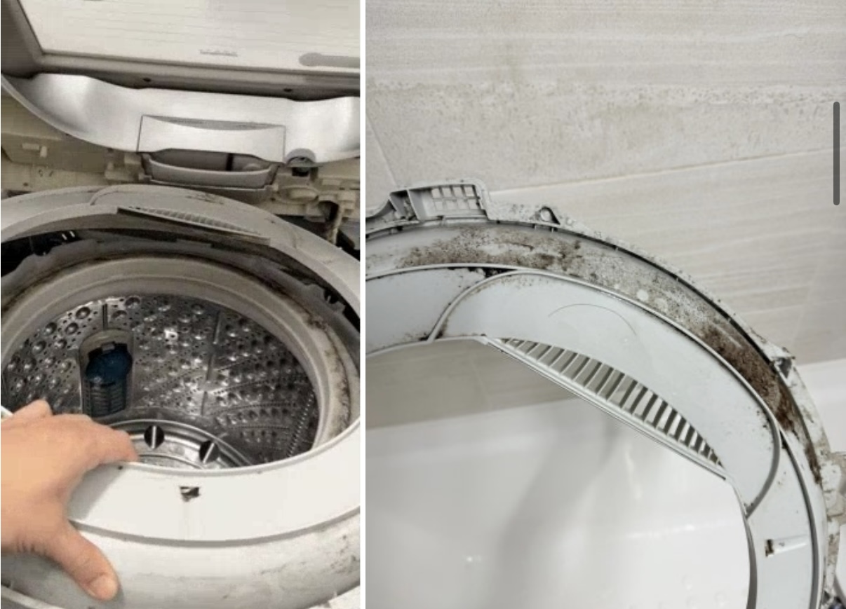 진짜로 곰팡이 한 가득인데 찌든때를 구석구석 깨끗하게 잘 세척해 줍니다. 세탁기를 돌리고도 만약 옷에 냄새가 난다면 이렇게 세탁기에 묻은 찌든때와 곰팡이 때문에 그런거라고 보시면 됩니다.