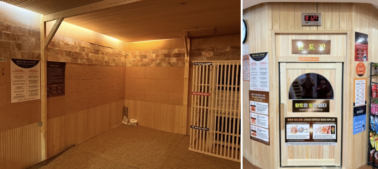 그리고 가장 온도가 높았던 황토방입니다. 둘째가 여기는 너무 덥다고 하여 일분 컷으로 나왔는데 땀빼기에는 진짜로 여기가 딱입니다.