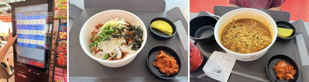 키오스크로 주문할 수도 있는 식당이 있는데 이렇게 한강 라면과 만두나 간단한 레토르트 음식 주문도 가능합니다.