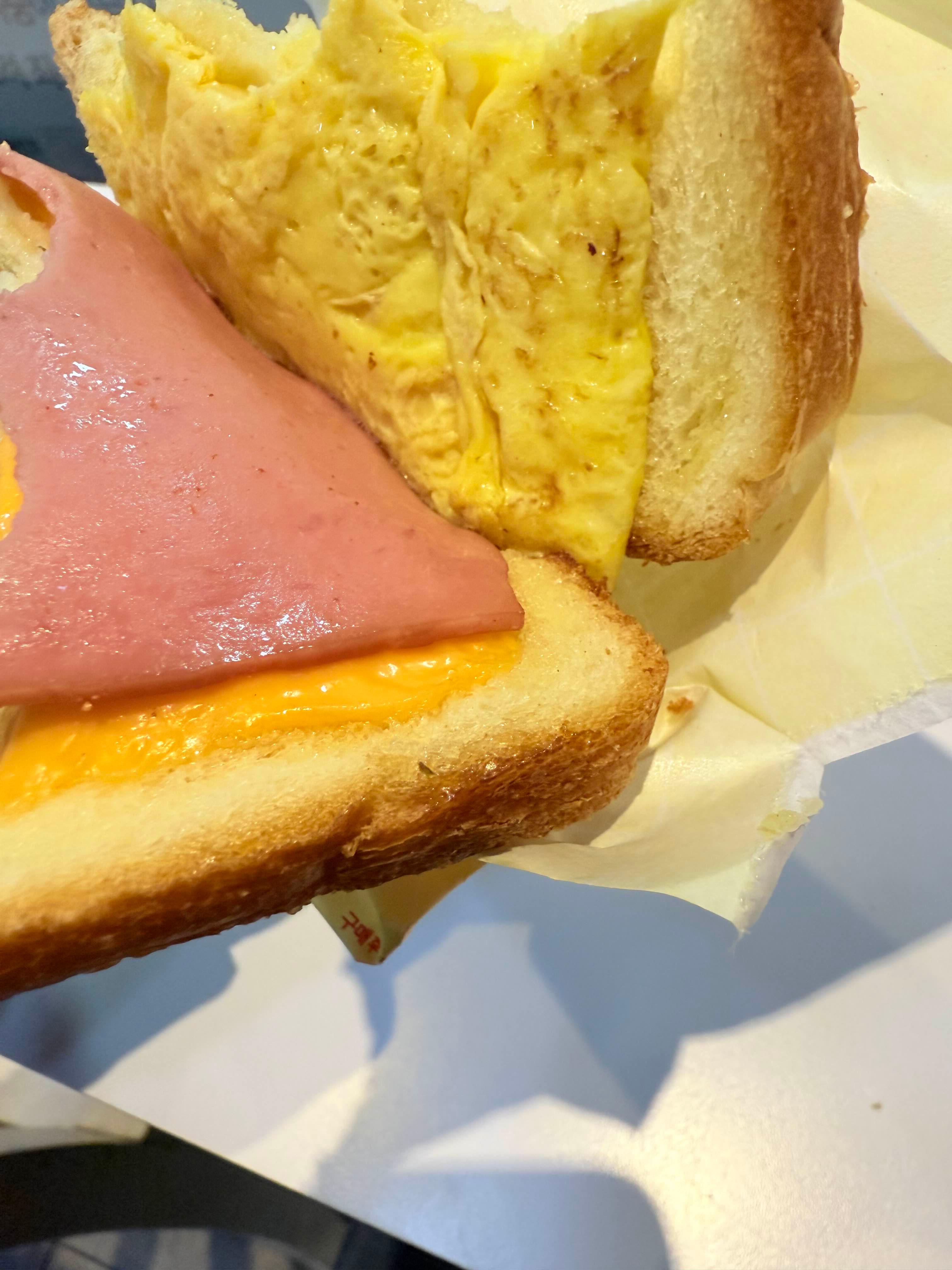 주문했던 햄치즈토스트가 1분정도 만에 나온것 같습니다. 진정 이게 바로 패스트푸드입니다. 단돈 500원을 더 아끼기 위한 기러기k아재 주문은 양배추도 없는 기본토스트에 음료까지도 따로 주문하지 않았습니다.