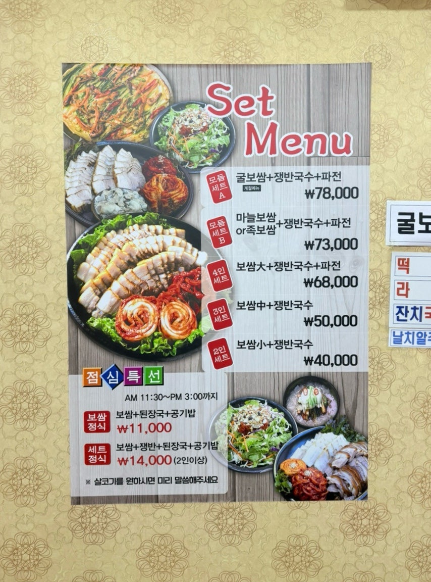 식당에서 제가 나왔을때 자리가 거의 다 만석이였는데 (10000석 아님) 그러다 보니까까 재료 소진도 빠르고 하여서 신선한 굴보쌈이 나오는것 같습니다.