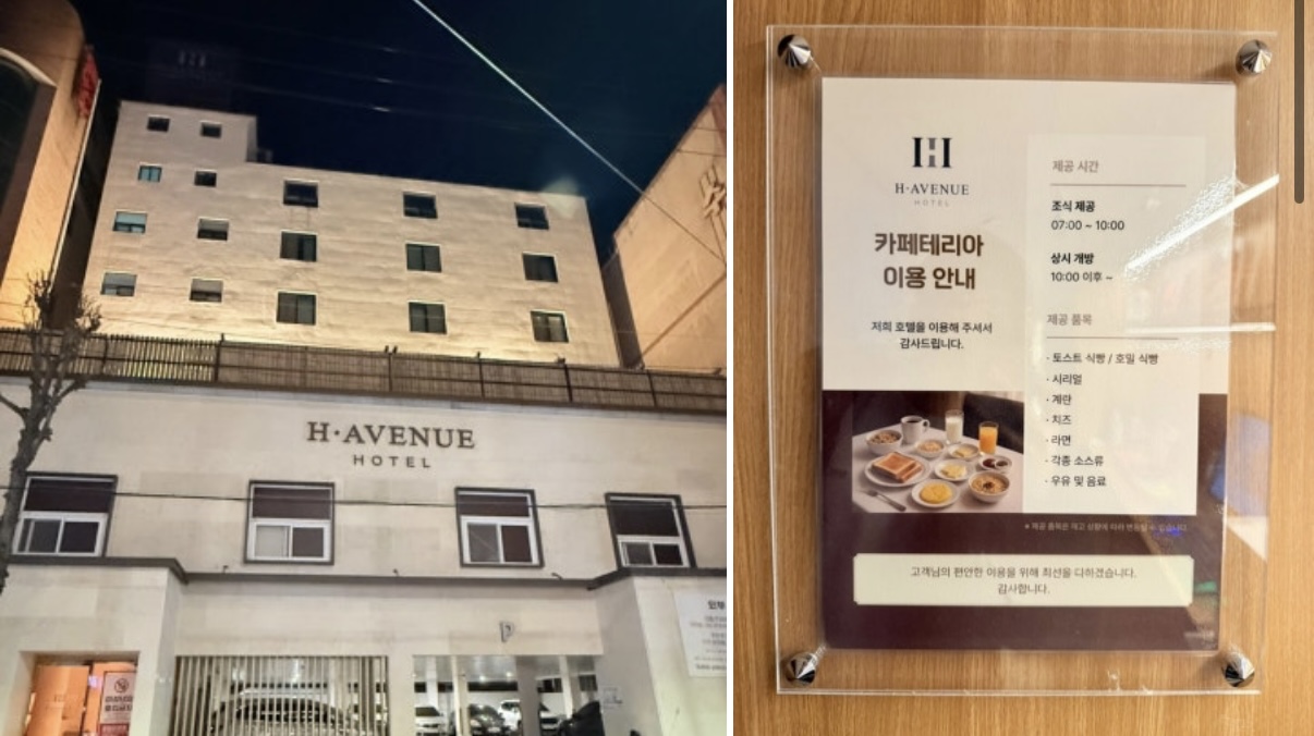 H.AVENUE 호텔 첨단점에는 카페테리아가 있어서 간단한 조식 제공도 됩니다. 저는 매우 이른 아침에 나왔기 때문에 호텔 제공 조식은 먹지 않았습니다.