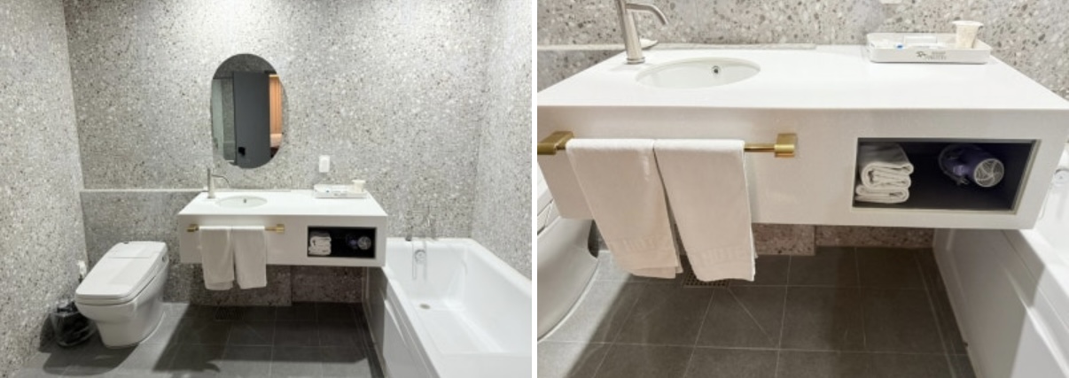 욕실도 굉장하게 깨끗한 편이고 욕실내 욕조와 수건도 충분하게 사용이 가능한 양이 비치가 되어 있었습니다.