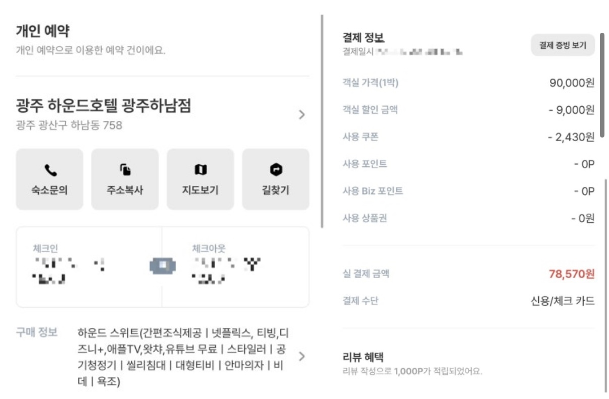 물론 리뷰를 쓰면 여기어때 1000포인트 추가 적립됩니다.