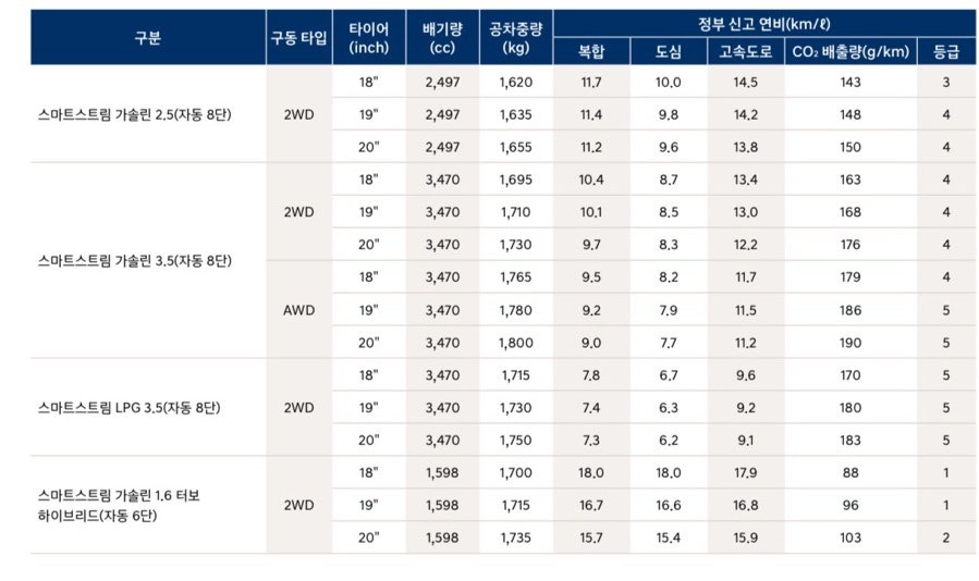 일단 같은 차라도 등급 즉 사양에 따라서 연비가 사양별 상이하게 달라집니다.