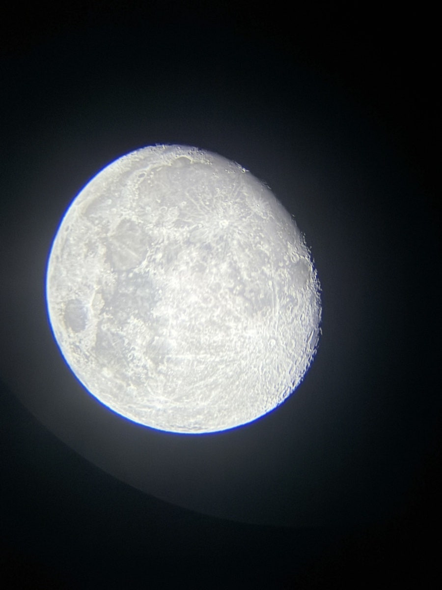 이게 만원경 안에서 직접 본 달을 핸드폰으로 촬영해주신 사진입니다. 진짜오 분화구나 지표면이 다 보이고 생각보다 더 달이 엄청 밝아서 엄청 신기했습니다.