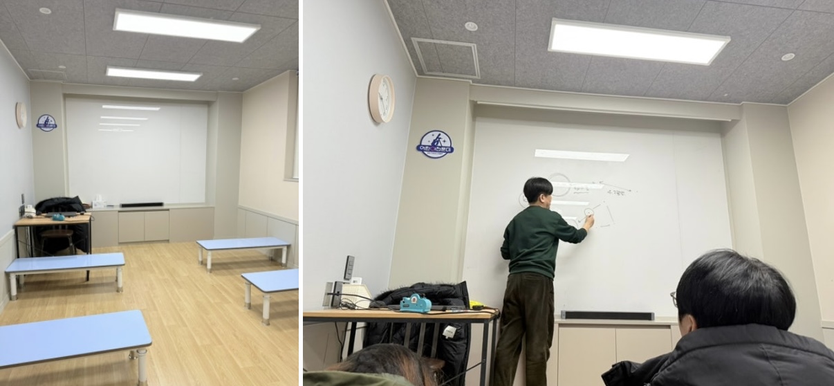 아빠와 함께하는 천체여행 체험 구성은 2시간 코스입니다. 그래서 30분 정도를 강의실에서 가족별로 앉아서 별에 대한 교육등을 먼저 받습니다.