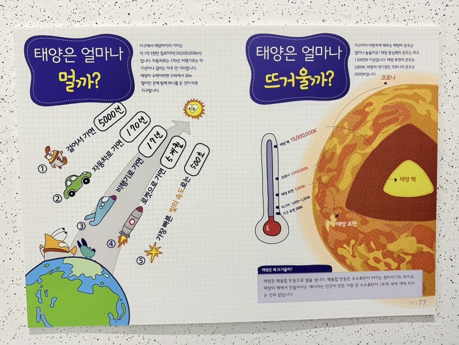 지구에서 가장 가까운 별이 태양이고 태양의 지름은 지구의 109배 등등 여러 정보를 얻을수 있습니다.