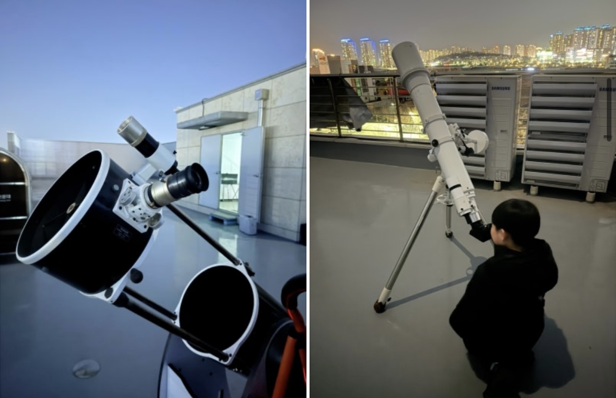 그리고 다시 옥상으로 바로 올라가서 이때는 준비해둔 돗자리등을 자리에 펴고서 가족별로 배정된 만원경으로 2차로 별관측을 하시면 됩니다.
