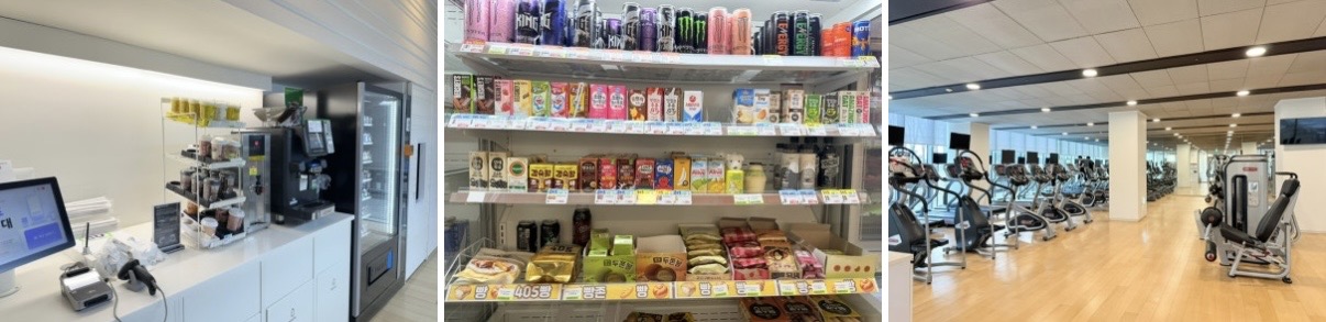 그리고 맨 아래층으로 내려가시면 편의점과 헬스장도 있습니다. 교육은 거의 5시에 끝나서 숙소에 갔다가 피곤해서 잠이 들었다가 실수로 6시 저녁식사시간을 놓치신분들은 여기에서 컵라면이나 빵과 과자 등을 구입하시면 됩니다.